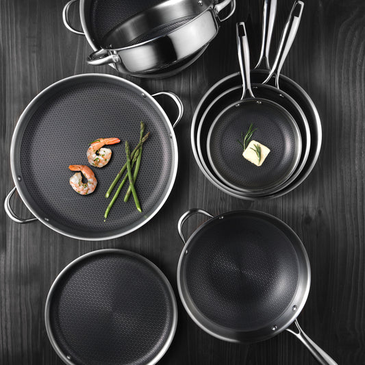 Ahorra espacio en tu cocina con nuestra colección Click&Cook. Podrás utilizar un sólo mango para todas sus piezas, además de almacenarlas fácilmente en tus cajones ya que ¡son apilables!