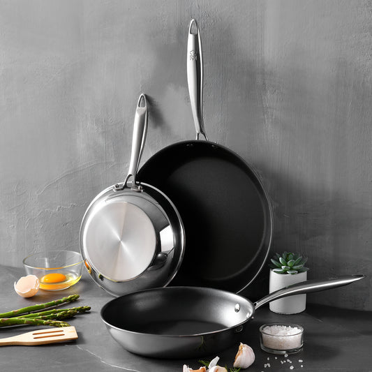 Proveedor:BergnerJuego 3 sartenes Bergner acero inoxidable Ø18-20-24cm