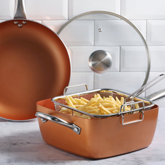 Otro aspecto clave al elegir una sartén es el tamaño o la capacidad. En Be Bergner se ofrecen sartenes de aluminio individuales o en sets, en una variedad de tamaños.