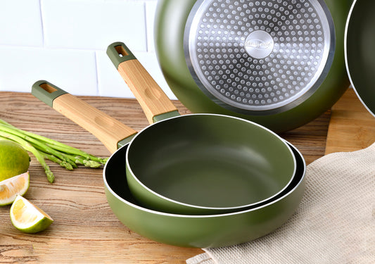 -27%Proveedor:BergnerJuego de 2 sartenes de 22 y 26 cm con mango extraíble Bergner de aluminio prensado verde - Click & Cook Save space & money