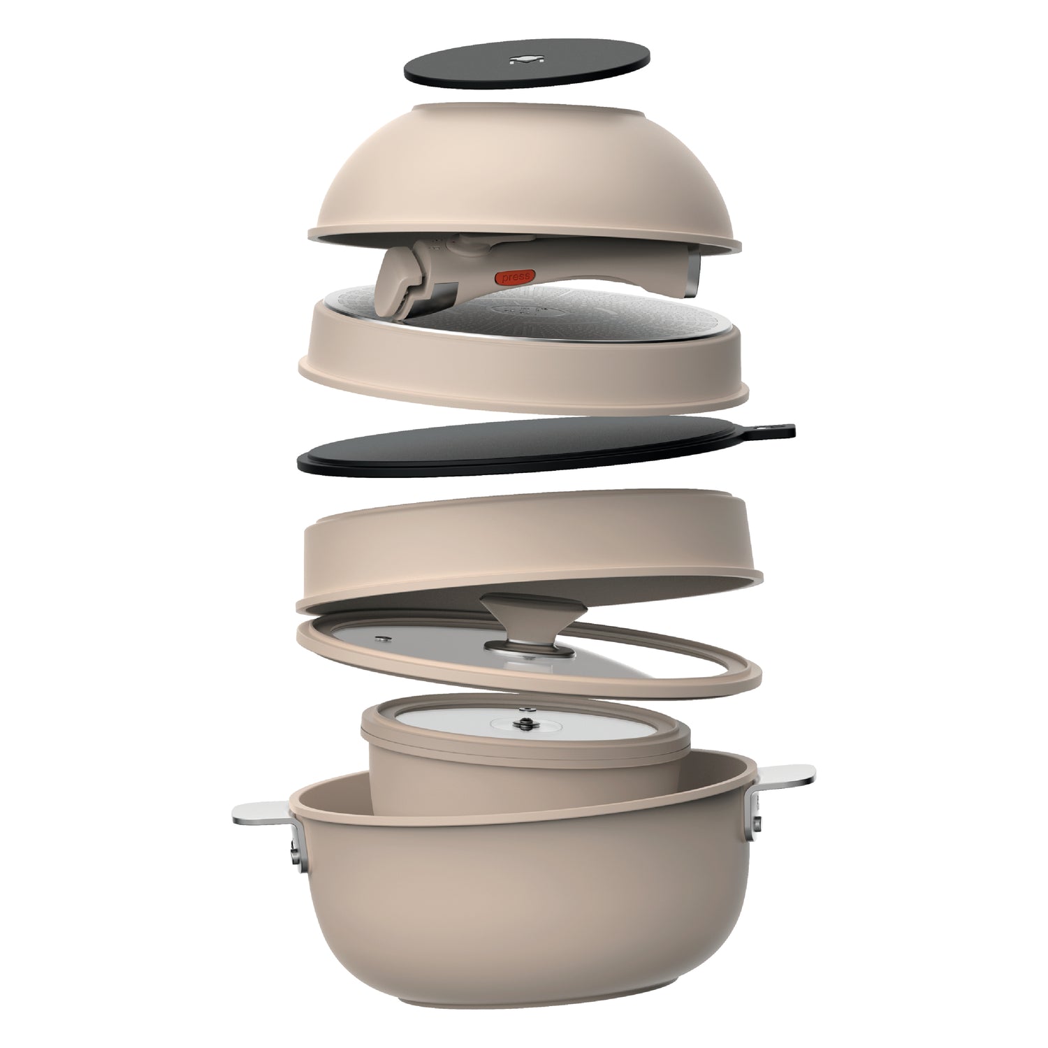Batería de cocina de 10 piezas MasterPRO apilable de aluminio fundido - Share & Play - Beige