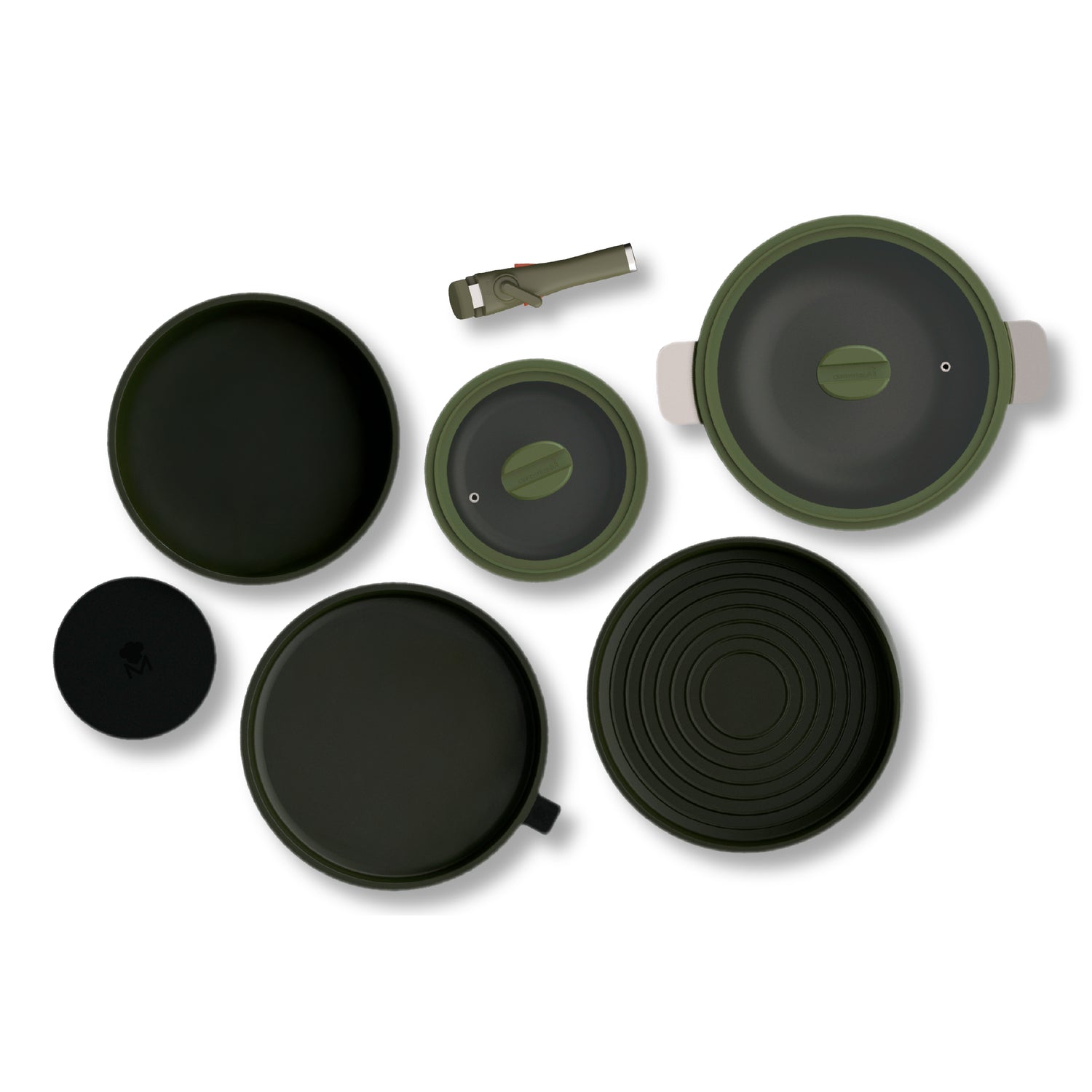 Batería de cocina 10 piezas MasterPRO apilable de aluminio fundido - Share & Play - Green