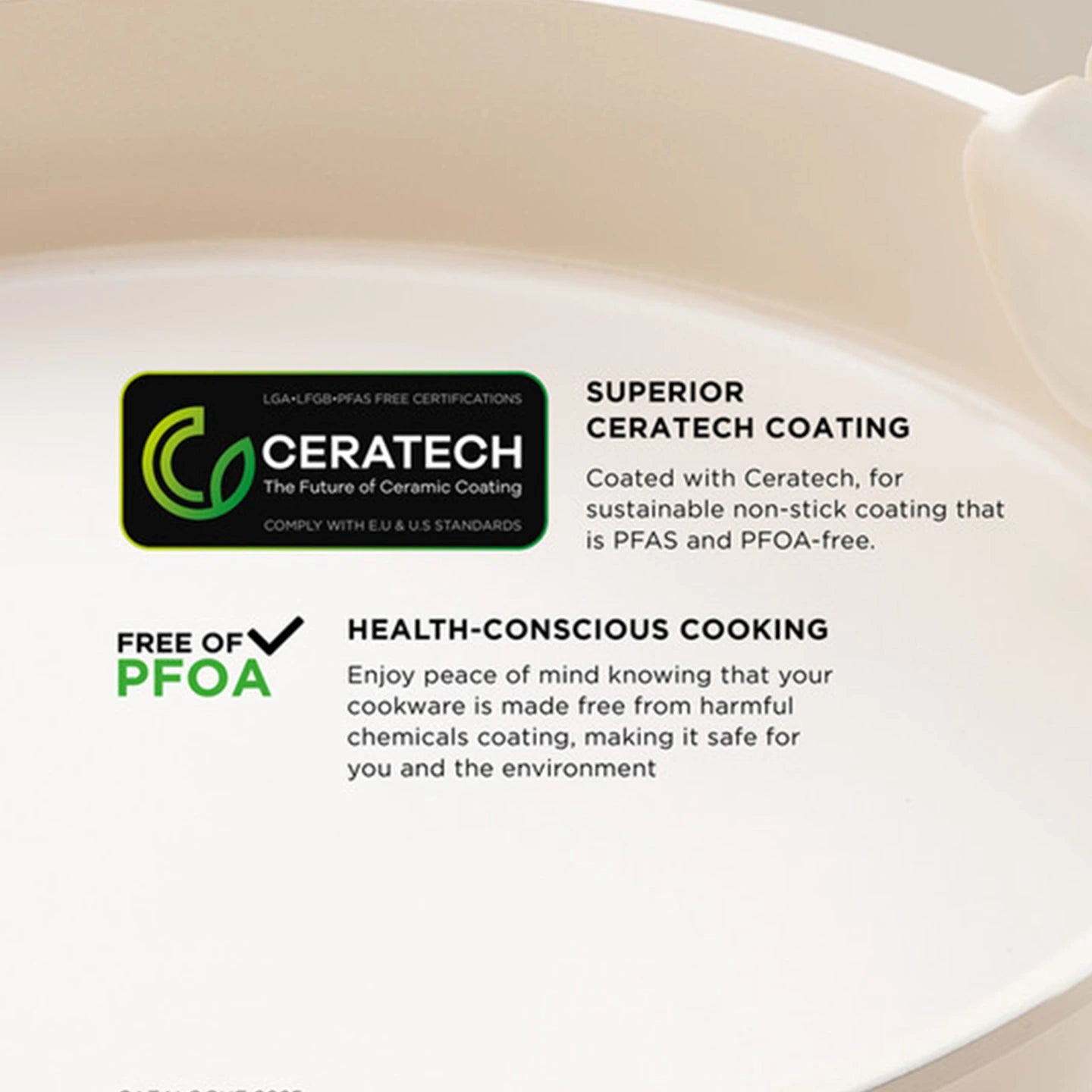 El revestimiento cerámico ofrece una capa antiadherente perfecta para preparar cualquier tipo de alimento sin problema. Además de estar fabricado sin PFOA, libre de sustancias perjudiciales para la salud y el medioambiente.