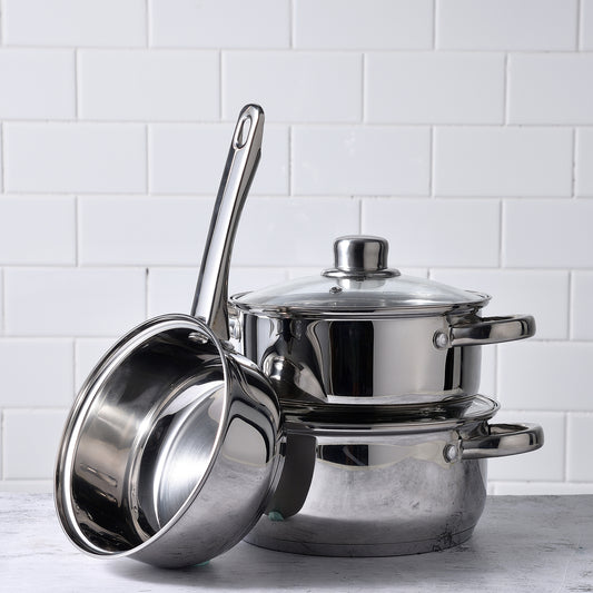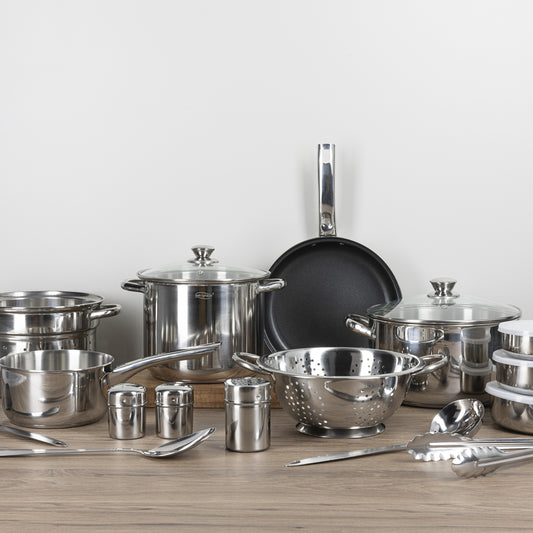 Además, las baterías de cocina de acero inoxidable son muy fáciles de limpiar. Son aptas para lavavajillas.