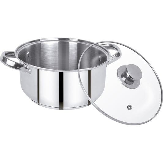 Batería de cocina Lexia, tu mejor aliada en la cocina. San Ignacio presenta una completa batería de cocina compuesta por 1 cazo de 16 cm (1.7 L), 1 cacerola con tapa de 20 cm (3.3 L), 1 cacerola sin tapa de 20 cm (4.2 L), 1 cacerola sin tapa de 24 c, (5.7 L) y 3 utensilios de cocina (cucharón, cuchara de cocina y espátula ranurada), tamaños diferentes para adaptarse a tus necesidades. El juego está fabricado en acero inoxidable de alta calidad con una base de inducción apta para usar en todo tipo de placas de cocina como la inducción, gas, vitrocerámica, eléctrica o halógena. Conun acabaado interior mate y pulido espejo en el exterior, la batería deslumbrará en tu cocina. Controla el cocinado con las tapas de cristal con salida de vapor y transporta las piezas con facilidad con las asas y mangos ergonómicos. Y para completar el conjunto, la batería incluye 3 utensilios básicos para cocinar como son el cucharón, la espátula ranurada y la cuchara de cocina. ¡Equipa tu cocina con una sola compra!