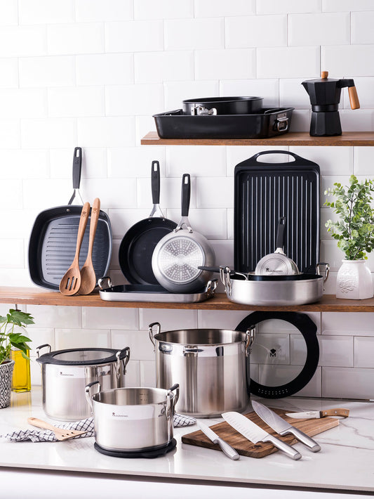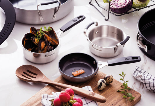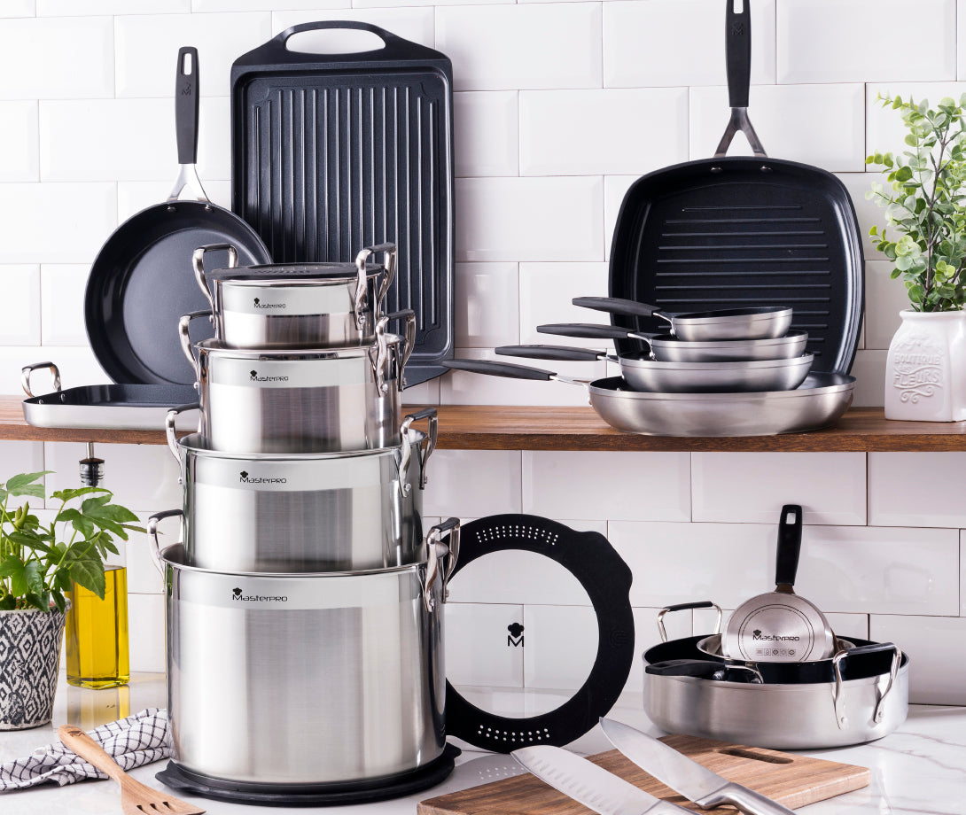 Batería de cocina de acero inoxidable y 3 utensilios de cocina MasterPRO - Smart