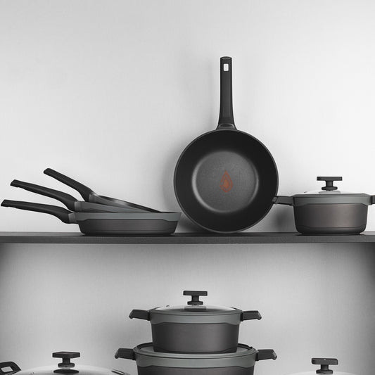 Diseñada para facilitar su día a día, esta colección de menaje de cocina está fabricada con aluminio fundido moldeado estratégicamente para asegurar una distribución y retención óptimas del calor. Con esta tecnología, ahorrará tiempo y energía, ya que la cocción se vuelve más eficiente y rápida, permitiéndole disfrutar de platillos deliciosos en menos tiempo.