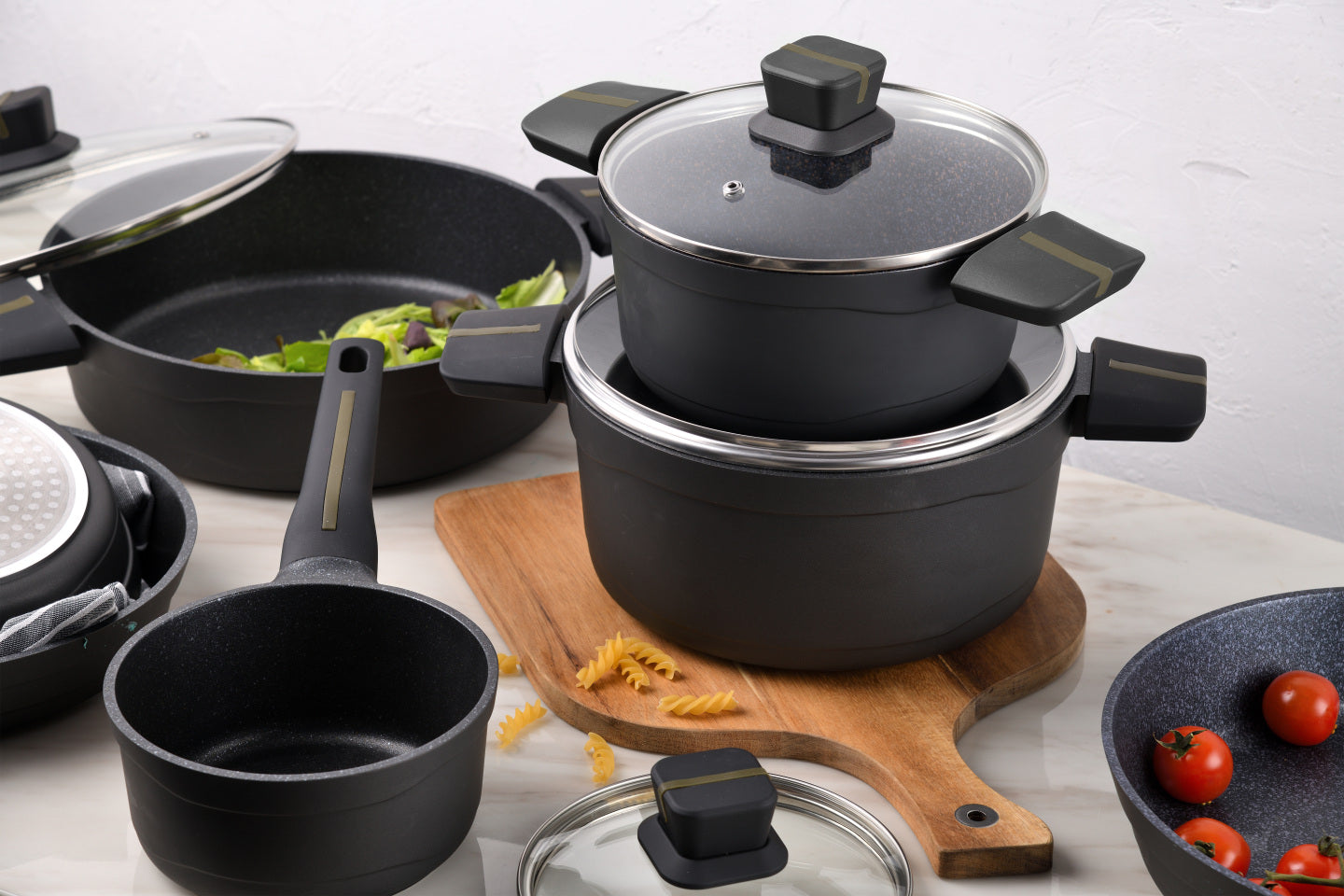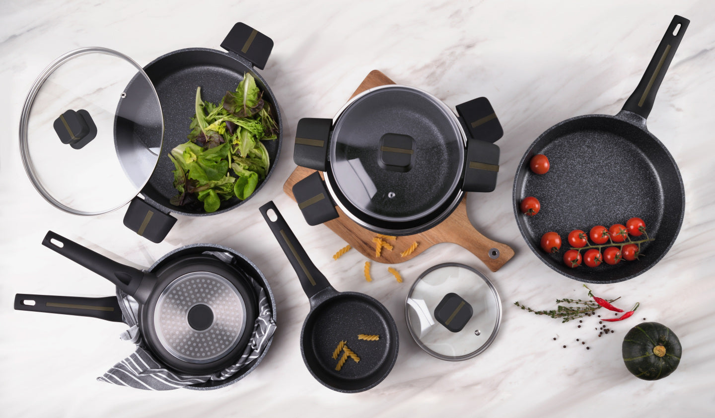 Inspiradas en la cultura mediterránea, encontrarás sartenes antiadherentes que permiten cocinar a la plancha, con poco aceite y ollas y cacerolas que representan la mezcla perfecta de tradición y sabor.