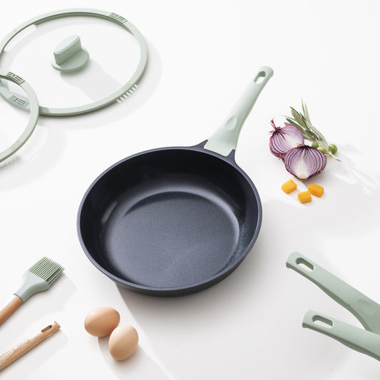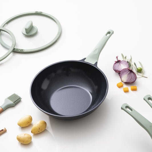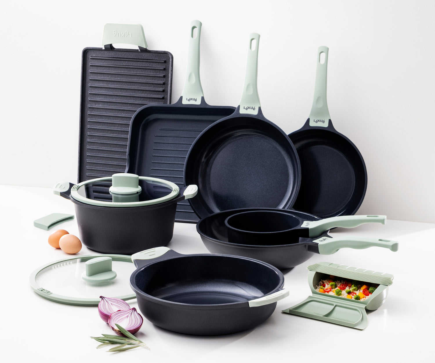 La colección de LEKUE destaca por sus tonos verdes vibrantes, su compromiso con la sostenibilidad y sus innovadores estuches para cocinar en el microondas. Con estos productos, podrás disfrutar de una cocina práctica y saludable.
