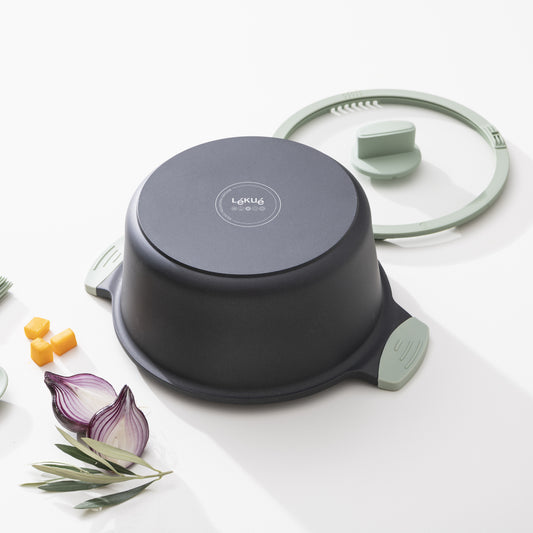La cacerola con tapa de Lékué tiene una gran resistencia y durabilidad. Fabricada en aluminio fundido para una gran distribución del calor.