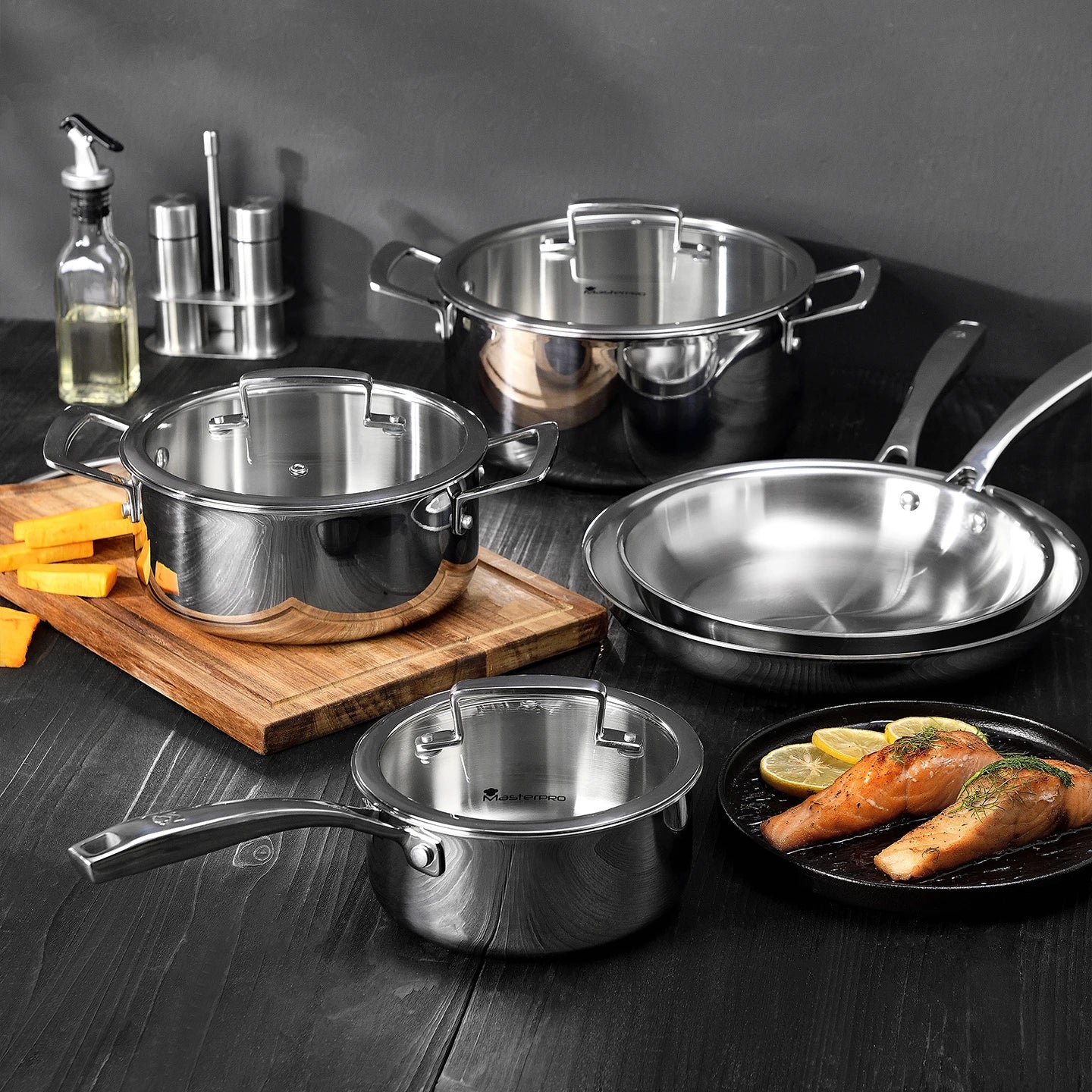 Las sartenes de la colección Legacy cuentan con 3 capas de acero inoxidable de alta calidad y durabilidad.