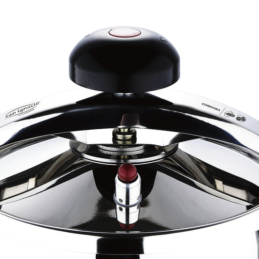 Olla a presión de la colección Córdoba de San Ignacio. La olla destaca por ser compatible con el mecanismo de inducción, esto favorece a su eficiencia a la hora de cocinar alimentos de manera rápida, segura y saludable. De igual forma, su fabricación en acero inoxidable ayuda a garantizar y mantener el estado óptimo de los alimentos y de la olla rápida. Gracias a la base de aluminio encapsulado que caracteriza a la olla de inducción, la distribución de calor es proporcional y evita deteriorar el estado de los alimentos. Asimismo, permite una limpieza profunda y rápida gracias a su superficie lisa en el interior y exterior.La olla express se caracteriza por su mecanismo de presión que en conjunto con la tapa con cierre automático garantizan la seguridad del usuario durante cocinar. De igual forma, cuenta con una válvula que se encarga de medir el nivel de presión del interior de la olla y la libera cuando esta sobrepasa el límite seguro. El modelo ergonómico del mango cuenta con un efecto de tacto frío que gracias a su recubrimiento antiadherente evita los deslizamientos. De igual forma, se mantiene a una temperatura natural, esto ayuda a evitar el desgaste del mango por exposición prolongada al calor. Su fabricación en acero inoxidable, además de brindar durabilidad y firmeza, le otorga una apariencia moderna y con efecto brillante en el exterior. Al igual que en el interior, la olla cuenta con una capa extra de aluminio en el exterior que está caracterizada por su resistencia a manchas y rayaduras. Al igual que muchas ollas de presión de la marca, el modelo Córdoba se caracteriza por la durabilidad de su estructura, esto prolonga la vida útil de la misma aún cuando se esté expuesta de manera prolongada al calor. La cacerola cuenta con un diseño moderno y con acabados de primera que gracias a su color plateado y brillante permiten su fácil adaptación a cualquier cocina o encimera.