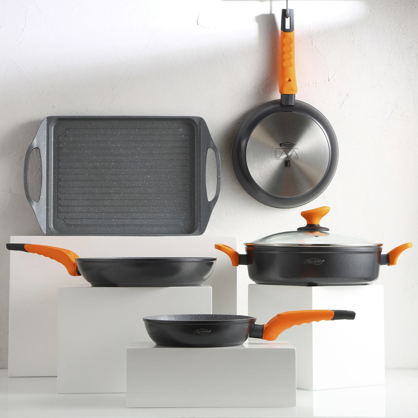 La cobertura antideslizante permite una manipulación segura durante su utilización. De peso ligero y fácil de manipular.El aluminio forjado garantiza la resistencia y una distribución homogénea para que todos los alimentos reciban el mismo calor. En su interior se encuentra un revestimiento antiadherente multicapa de Whitford reforzado con titanio de alta calidad. Posee una resistencia extra incluso a rayaduras. Incorpora mango color naranja con diseño ergonómico y tecnología Soft Touch para un agarre seguro y cómodo. Está libre de PFOA y demás componentes tóxicos. Gracias a su composición se puede limpiar fácilmente con un trozo de papel, agua y jabón.Una cocina saludable comienza con utensilios que mantengan los sabores y texturas de los alimentos.