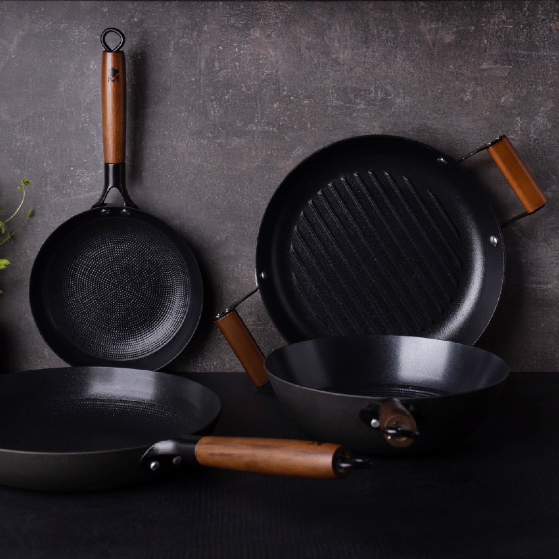 La colección se compone de sartenes en 3 tamaños, cazo, wok y 2 tipos de planchas en diferentes dimensiones para poder cocinar todo lo que te propongas.