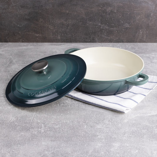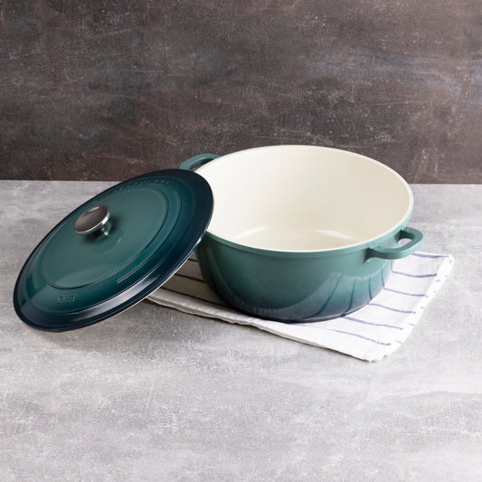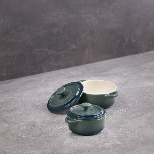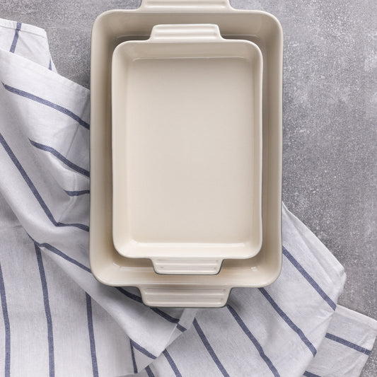 Excalibur presenta un juego de 2 bandejas de horno rectangulares fabricadas en gres de alta calidad que le confieren una gran resistencia y durabilidad a la pieza, además de retener increíblemente la temperatura de los alimentos. Una colección que recuerda a una cocina de antaño con un diseño en color verde degradado, con un interior en color crema que resaltarán tus creaciones dulces y saladas. Cocina en el horno, calienta los alimentos en el microondas o consérvalo en el frigorífico, todo lo que necesites. Un juego completo y de fácil limpieza en el lavavajillas para que puedas usarlos las veces que necesites.