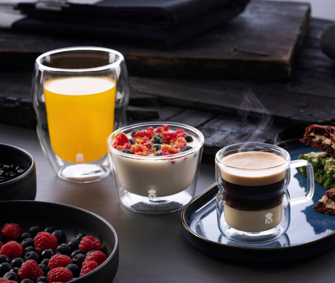 Elaborado para ofrecer la experiencia más premium, han sido cuidadosamente diseñados para la degustación de cócteles, licores, otros alcoholes y aperitivos. Disfruta de la mejor calidad gracias a su material único: el vidrio de borosilicato de doble pared soporta temperaturas de entre -20ºC y +200ºC, lo que le permite